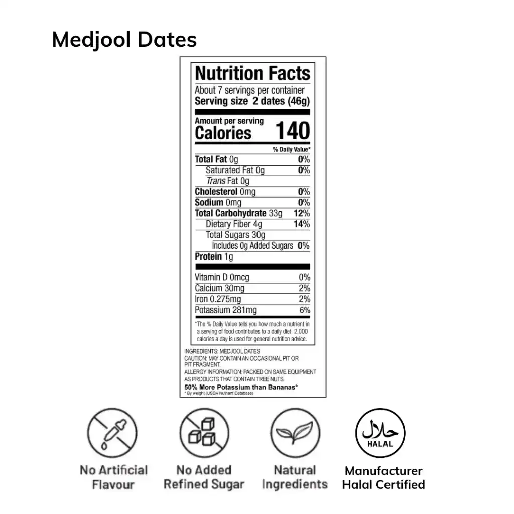 | Medjool Grade | AAA Large VIPÂ , AAA Jumbo VIPÂ , AAA Super Jumbo VIP |